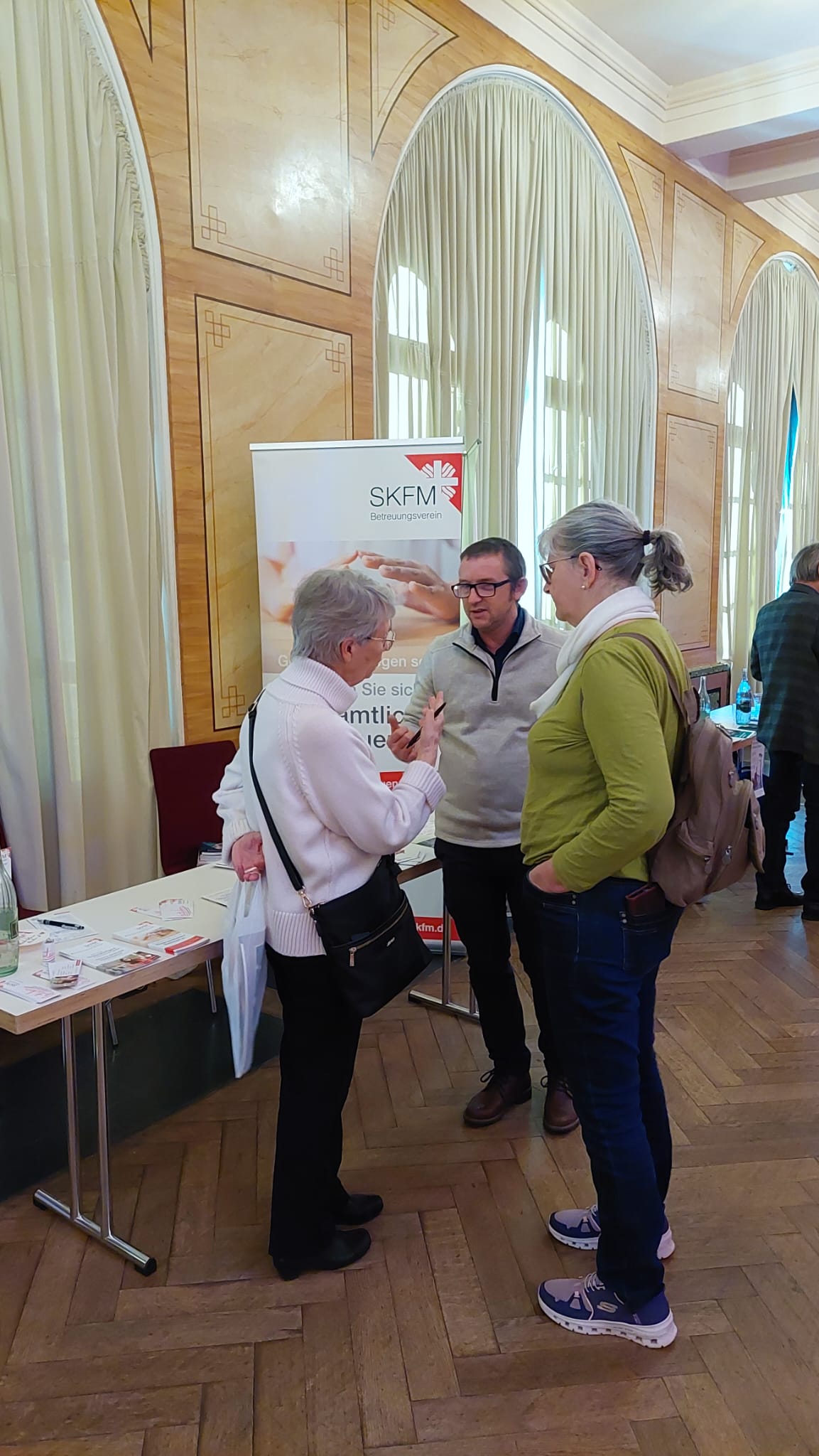 Der Vorsitzende Hans-Joachim Schulz, Diözesangeschäftsführer Salvatore Heber und Ortsgeschäftsführer Christian Simunic informierten an einem Infostand über die Arbeit und die Möglichkeiten des ehrenamtlichen Engagements in den SKFM-Betreuungsvereinen. Zudem wurden Gutscheine für kostenfreie Beratungsgespräche zu vorsorgenden Verfügungen verteilt, die von den Besuchenden dankbar angenommen wurden.