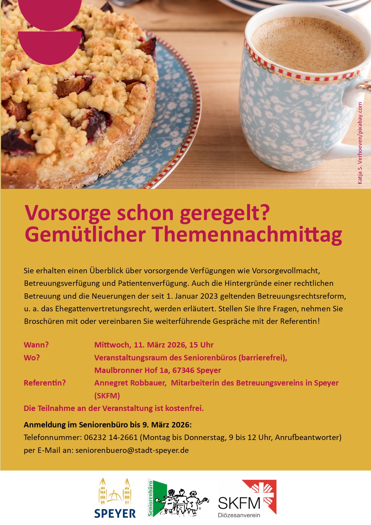 | Einführungskurs Ehrenamtliche Betreuung / Bevollmächtigte II 16 Mär 2026 18:00 - 19:30 |