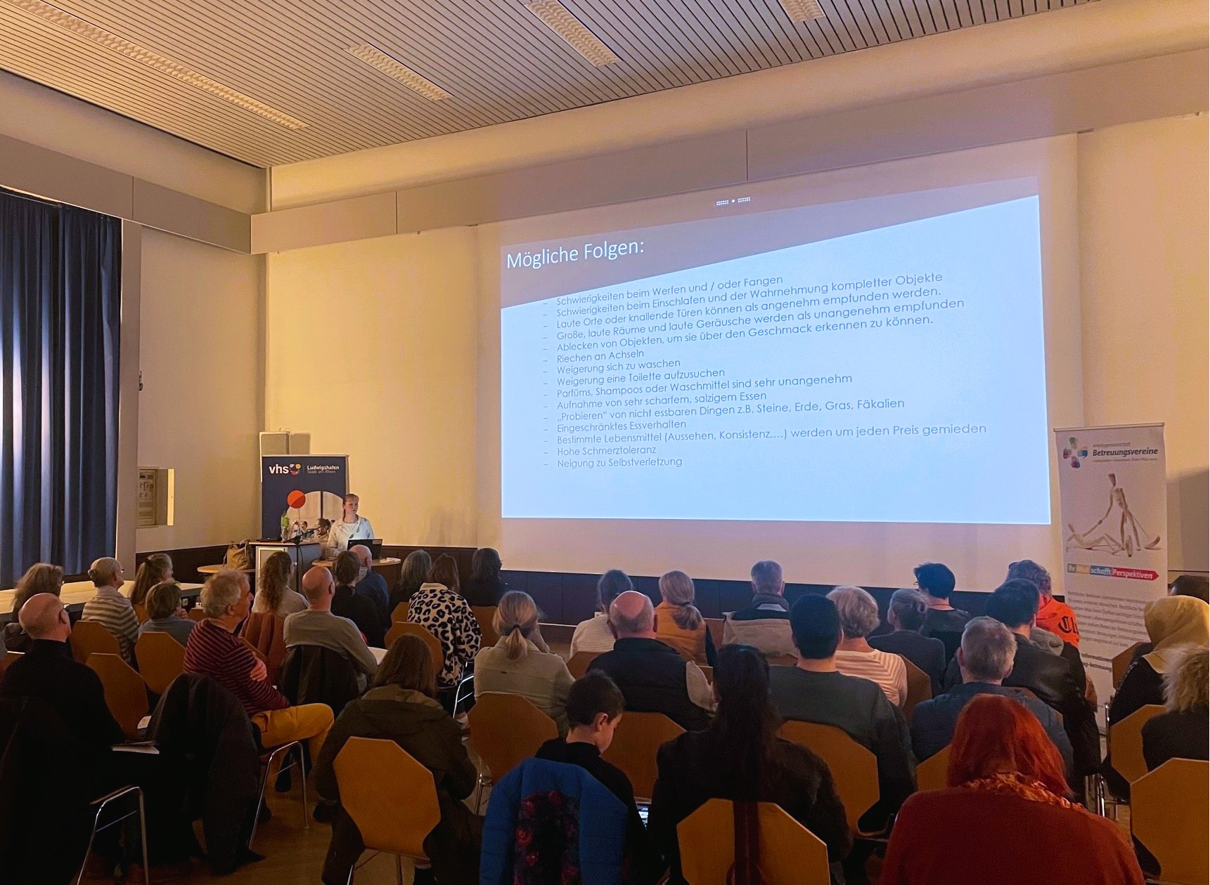 (SKFM LU, RPK) Im Rahmen der Veranstaltungsreihe „Ihr Mut schafft Perspektiven“ lud die Arbeitsgemeinschaft der Betreuungsvereine Ludwigshafen, Frankenthal, Rhein-Pfalz-Kreis am 24.03.2025 zum Vortrag „Autismus – ein Spektrum“ in die Volkshochschule Ludwigshafen ein. Referentin Christina Ruppertus von der Autismusspezifischen Beratungsstelle des Ökumenischen Gemeinschaftswerks Pfalz gab Einblicke in die Wahrnehmung von Menschen mit einer Autismus-Spektrum-Störung und zeigte mögliche Handlungsansätze auf, wie Menschen mit Autismus bestmöglich unterstützt werden können.